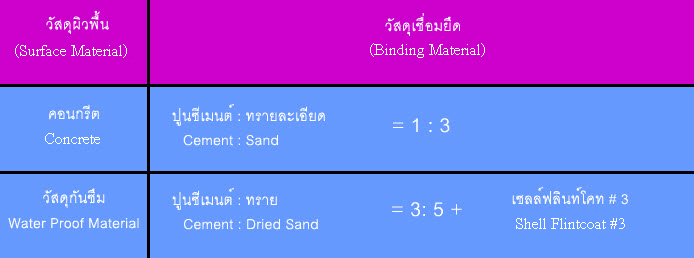 ** ทรายละเอียดต้องแห้งสนิท (Absolutely Dried Fine Sand) *** ผสมเซลล์ฟลินท์โคทในจำนวนพอเหมาะแทนน้ำ (ADD Shell Flintcoat # 3 to desired stiffness)